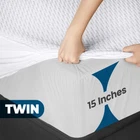 Mattress Protector: Twin size mattress protector measures 39x75 inches - fits up to 15 inches deep; fitted cover style design with elastic all around. Soft And Breathable Viscose Material: This 200 gsm viscose mattress protector offers the perfect combination of comfort, protection, and breathability. The soft, smooth and cool surface further ensures that you enjoy a restful sleep all night long. Fitted Style All Around Elastic: The mattress protector features a fitted style with an all-around elastic band, ensuring a snug and secure fit on the mattress Waterproof Protection: This waterproof mattress protector shields the mattress from any spills, sweat, and other liquids. It is highly absorbent and helps keep the mattress clean and dry, while also protecting it from wear and tear Care Instructions: Wash in cold water on a gentle cycle and tumble dry on low heat. Do not use fabric softener or bleach. Do not Iron