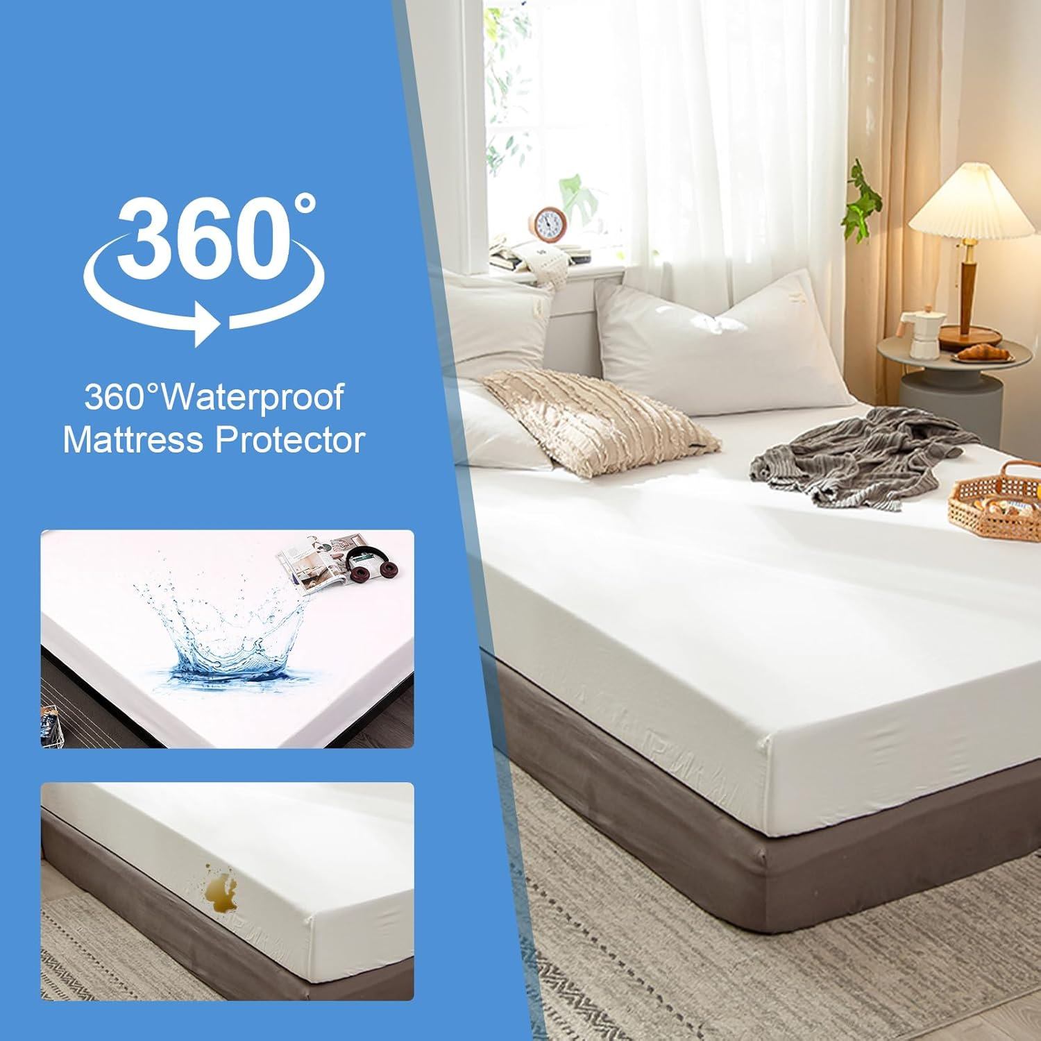 This mattress protector is a game-changer! It fits my king bed snugly with deep pockets, stays silent, and keeps spills out while feeling incredibly soft and breathable. Perfect for kids, pets, or anyone who wants extra protection without sacrificing comfort. Easy to wash too—highly recommend!