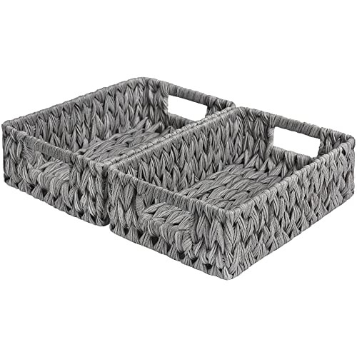Return Policy Fast Delivery Trusted seller Wicker Baskets for Storage, Waterproof Rattan Storage Baskets, Odorless Wicker Basket with Handles, Decorative Storage Containers, Gray Basket for Pantry Storage, 2-Pack Product Description Durable Quality - Made from plastic wicker, the appearance is not solid color since it is an imitation natural material. Big Capacity: 11 ¼ x 7 ½ x 3 ½ inches (L x W x H), the wicker storage baskets may vary 1/4 inch in size due to handmade. Sturdy Structure: The woven storage baskets are handwoven on a metal frame, which is extremely sturdy and durable, suitable for outdoor and indoor use to store items. Versatile Storage: Moisture-proof material makes the rectangle wicker basket easy to keep clean, perfect for storage use in bathroom and kitchen to store hand towels, lotions, vegetables, snacks, etc. Convenient Design: Each rectangle wicker basket features 2 handles, convenient for transportation, ideal to use as storage baskets for shelves or coffee table. Fashion Exterior: With hand-knitted unique textures, the gray baskets for storage double as decorative baskets while they store your odds and ends. Shipping Returns Payment Shipping Shipping is FREE to all addresses other than APO/PO boxes in the lower 48 states. All our stock ships from US-based warehouses. Shipped via USPS or UPS (depending on location and package weight) Unless stated otherwise, all orders will ship within 24-72 hours of your payment being processed. Check our feedback to see the great reviews of FAST shipping we offer. Returns Seller does not accept returns Payment We currently accept payment via eBay managed payments only. Once payment is cleared, we will dispatch your shipment within 1-3 business days. Please refer to the "Shipping" tab for more information regarding shipping speed to your destination.
