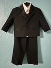 Wedding Black Suit Jacket Vest pants 4 Pcs Set Children Formal Tuxedo Host Dance Party Size :1 Unbranded Pre owned but in good condition Please see pictures for measurements and details Set has 4 pieces - 1 suit jacket black long sleeve -1 pant black -1 white shirt long sleeve -1 black vest