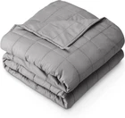 SOOTHING COMFORT: A weighted blanket provides gentle, comforting pressure that can help to reduce tossing and turning, making it easier to fall and stay asleep. Made with all-natural materials such as cotton fabric and irritant-free filling, it is gentle on the skin and will not irritate those with sensitivities. And beyond its practical uses, a weighted blanket also works as a calming tool for toddlers and children, helping to soothe them like a gentle hug. HOW TO CHOOSE: The weight of the blanket should be about 10% of your body weight. For example, a 150 lb adult would use a 15 lb weighted blanket, and a 65 lb child would use a 7 lb weighted blanket. The blanket should be no longer in size than the top of your mattress and should not hang over the sides of your bed. Please reference our chart to determine which blanket is right for you. UNIQUE DESIGN: The structure of Bare Home Weighted Blanket is designed with reinforced stitching to prevent beads from shifting or leaking while you are sleeping. Smaller pockets allow for even distribution of weight over the surface of the body. Our blanket features corner loops that can be used to secure a Bare Home Duvet Cover with corner ties. OEKO-TEX Standard 100 Certified free from harmful chemicals and dyes. Label ID: BJ025 166847 CARE INSTRUCTIONS: Machine wash in cold water on gentle cycle. Hand wash or dry clean if needed. Hang dry or air dry. Pair with a Bare Home duvet cover or weighted blanket cover in the appropriate size to protect your weighted blanket and reduce cleaning time. REST ASSURED: We take every measure to ensure that our products are of the highest quality. Sleep on them for 30 nights. If you are still not satisfied, contact our live customer service team and we'll make it right. Product Description BARE HOME Relaxing Weighted Blanket RELIEVE STRESS NATURALLY WITH THE SOOTHING COMFORT OF OUR WEIGHTED BLANKET. RELAX & UNWIND Enjoy the calming effect of a weighted blanket Our weighted blanket is designed to help improve quality of sleep naturally and recreate the comforting sensation of a hug. The breathable material keeps you cool in the summer and warm in the winter. Smaller pockets, reinforced stitching, and increased fiber filling keep your sand like glass beads from shifting and leaking. Easily secure your weighted blanket to a duvet (sold separately) with loops. CARE INSTRUCTIONS Machine wash in cold water on gentle cycle, and hang to dry. Dry clean or spot clean as needed. HYPOALLERGENIC & NON-TOXIC Filled with ultra-fine glass beads that are non-toxic and odor-free. DURABLE & LONG LASTING Premium stitching and smaller pockets keep filling in place. Durable microfiber won’t tear or pill. 1 CARE INSTRUCTIONS 2 HYPOALLERGENIC 3 LONG LASTING 4 IMPROVED TECHNOLOGY 5 SIZE CHART WHICH BLANKET DO I CHOOSE? CHOOSE A BLANKET THAT IS AROUND 10% OF YOUR BODY WEIGHT. WE SUGGEST PURCHASING A BLANKET THAT WILL NOT HANG OVER THE SIDES OF YOUR BED TO AVOID SLIPPING. DOES IT COME WITH A COVER? COVERS SIZED TO FIT OUR WEIGHTED BLANKETS ARE SOLD SEPARATELY. WILL I NEED TO GET USED TO IT? WE RECOMMEND TAKING 5-7 DAYS TO GET USED TO SLEEPING WITH YOUR WEIGHTED BLANKET. HOW DO I CLEAN IT? YOU CAN MACHINE WASH IN COLD WATER ON A GENTLE CYCLE. HANG TO DRY. IF DESIRED, YOU MAY ALSO DRY CLEAN OR SPOT CLEAN. The video showcases the product in use. The video guides you through product setup. The video compares multiple products. The video shows the product being unpacked.