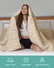 Weighted Blanket for Adults Twin Size 15 lbs, Dual Sided Soft Fuzzy Jacquard Sherpa Weighted Blankets for Sleeping, Cozy Fluffy Knitted Heavy Blanket for Couch Bed, Khaki, 60 x 80 inches Soft Jacquard Weighted Blanket: Featuring double-sided fluffy Sherpa fabric and classic jacquard pattern, the weighted blanket 15 lbs wraps you in a warm and cozy embrace while adding a touch of elegance for your home decor Embrace a Blissful Sleep: Like a gentle hug, the Sherpa weighted blanket cocoons you in a cloud of softness, creating a sense of security that lulls you into a deep and peaceful slumber. Its optimal weight pressure helps alleviate stress and soothe tension, ensuring you wake up refreshed and revitalized Thoughtful Weight Distribution: With its innovative 7-layer design and high-density stitching technology, the ceramic beads are evenly distributed in each pocket, preventing any discomfort or shifting Find Your Perfect Fit: We recommend choosing a heavy blanket that is 8% to 12% of your body weight for optimal effectiveness. If you're new to weighted blankets, start with a lighter one and gradually adjust to the gentle pressure Washing instructions: Our weighted blankets for adults are designed for durability and wrinkle resistance, no pilling, fading, or shrinking. We recommend washing in a commercial machine, tumble drying at a low temperature, do not bleach or iron, as the blanket is heavy, for light dirt we recommend spot clean