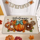 aims to uphold the core principles of high quality and helping customers. specializes in premium quality and stylishly designed home floor mats and rugs. Help customers decorate their dream houses. Durable and non-slip kitchen mat The anti-fatigue kitchen mat is designed with an attractive texture on the top, and the kitchen mat has a non-slip bottom to ensure the mat stays in place for added safety and stability. Water under the carpet may cause slippage, use it on a dry surface. Beautiful kitchen mat for home decor Our kitchen mats make a beautiful and warm addition to your kitchen, dining room, indoor entryways and craft rooms. This 2 pieces mats set is also suitable for outdoor entryways, balcony and office spaces. They are perfect mats set to brighten up your kitchen for less. Specifications: Material: Linen, rubber Color: Multi-color Set of 2:1PC 17" x 29" kitchen mat, 1PC 17" x 47" kitchen mat Notice: Due to manual measurement, the doormat size has an error of ±0.2. To keep it clean and beautiful, please clean it regularly. But please note that no machine wash is required, just rinse water. Attractive Unique Design: The non-skid doormat top was printed with pumpkin, wreath, doughnut patterns. Not only is it a beautiful and creative way to decorate your home, but it also brings you a deeply cheerful festive atmosphere in fall, autumn, Thanksgiving, Friendsgiving Comfort Standing Kitchen Mat: This cushioned switch mat features non-slip recycled rubber on the back and low-profile linen felt on the top to reduce chances of tripping. Besides, the low-profile rug has a high-quality durable construction that effectively resists stains 2-Piece Kitchen Rug: There is a door rug and a long kitchen runner rug in the package, which measures 17" x 29" and 17" x 47". One short and one long make these padded mats (alfombra para cocina) be the perfect size for kitchen Perfect For Home Decor: The seasonal floor rugs are perfect for indoor kitchen, sink floor, living room, bathroom, office, laundry, foyer, entryway, doorway, outdoor, porch, deck, patio entrances, veranda, balcony, restaurant kitchen, holiday decor. Just place it anywhere you want. Add pop colors to decor your home and protect your floors, too Easy To Clean: Cleaning of kitchen carpets is quick and easy, just spray with a hose or use a sponge and mild detergent to remove dirt. Do not bleach or dry clean, do not wring and let it air dry. Our washable kitchen rugs are rigorously tested to ensure they last for a long time and retain their shape after washing