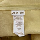 This West Elm pillow cover features a geometric pattern in yellow and white. It is square in shape, measuring 17"x17", made of 100% cotton material, and embroidered with a boho style. The design is a crewel embroidery in a broderie theme, adding a unique touch to any home decor.