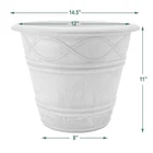 Part of our award-winning , the Western Weave pot from Arcadia Garden Products is made from a mix of recycled plastic, stone , and wood dust. Great for both indoor and outdoor use, the bottom of the planter can be easily drilled using any standard drill bit. The winning combination of recycled ingredients in the PSW line makes this an attractive, lightweight product that is also weather resistant and easy to clean. These 14.5-inch pots are available in a variety of colors and feature stylish, raised scroll work and embellishments inspired by the Old West. A thoughtful gift for those who enjoy plants and planting, PSW Pots have exceptional strength and eye-catching visual appeal. And because it coordinates with other PSW containers, you can choose from a variety of additional matching pots and saucers to make your garden collection complete. MADE WITH RECYCLED MATERIALS: A blend of recycled plastic, stone , and wood dust, this 14.5” planter is eye-catching and long-lasting for mindful gardening. LIGHTWEIGHT & DURABLE: PSW Pots are durable, lightweight, and resistant to weather conditions and UV rays for extended outdoor use. -OF-A-KIND: Due to the blending of recycled materials, every PSW pot is unique with slight variations that infer an artisan’s touch. OPTIONAL DRAINAGE: Easily add drainage holes using any standard drill bit without damaging the integrity of the pot. VARIETY: Having choices makes a difference when creating a certain look in your garden or sunroom. PSW products are available in a variety of shapes, sizes, and colors whether for complementing your existing gardenscape or creating a new garden or patio look.