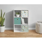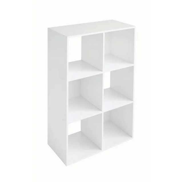 Product details The 6-Cube Storage Organizer features six compartments perfectly sized for storing and displaying office supplies, books, clothes, craft supplies, photos, collectibles and so much more! This sturdy bookcase can stand vertically or horizontally to best suit your needs and space. They are compatible with 10.5" x 10.5" collapsible storage bins (sold separately) and available in multiple finishes. Three open-back cube shelves make managing cords and cables easy, while three closed-back shelves help keep items securely housed. Add an accent piece that is both functional and stylish to your living room, family room, home office, playroom, closet and more, with the 6-Cube Storage Organizer. Stylish 6-cube organizer bookcase Features six 11" x 11" x 11" open storage compartments Can be used vertically or horizontally to fit your space and needs Designed with 3 open-back shelves and 3 closed-back cube shelves Top panel and 2 middle shelves support up to 22 lbs each; bottom panel supports up to 33 lbs Compatible with 10.5" x 10.5" collapsible storage bins (sold separately) Perfect for use in dens, living rooms, family rooms, playrooms, home offices and more Materials: particle board, paperboard Finishes available: White (MS5336278612010), Black (MS5336278612009), Canyon Walnut (MS18-D1-1009-49) and Rustic Brown (MS18-D1-1009-48) Attaches to the wall with included hardware for safety Easy to assemble with included instructions and assembly video guide (hammer & Phillips head screwdriver required) Package size: 39.53" x 4.17" x 15.28" (32.81 lbs) Assembled weight: 32.5 lbs Assembled dimensions: 23.7" W x 11.73" D x 35.39" H