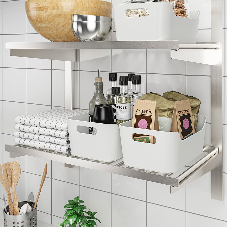 Product Description: Stay organized with this White Storage Box (24x17 cm) —a smart solution for managing small items in your kitchen, office, or any storage space. Designed with functionality in mind, it features a lowered front for easy access and visibility, along with two grip-friendly side handles for convenient carrying. Its smooth, rounded corners and durable plastic construction make it both easy to clean and long-lasting. Key Features: Efficient Storage – Keeps small items organized and easy to locate Lowered Front Design – Provides quick visibility and easy access to contents Grip-Friendly Handles – Comfortable side handles for easy carrying and pulling Rounded Corners – Safe and smooth design for added ease of cleaning Durable & Lightweight – Made from sturdy plastic while remaining easy to handle Sleek Neutral Look – White finish complements all decor styles Eco-Friendly Material – Made with a minimum of 50% recycled polypropylene Multi-Room Use – Suitable for kitchen, office, bathroom, or closet organization Material: Polypropylene plastic (min. 50% recycled) Care Instructions: Wipe clean with a cloth dampened in a mild cleaner Wipe dry with a clean cloth Measurements: Width: 17 cm Height: 11 cm Length: 24 cm Weight: 0.29 kg Package(s): 1