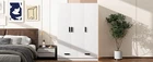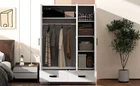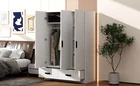 Wardrobe Closet with Storage Drawers,Shelves and Hanging Rod,White 3 Door Product Features [Upgrade Your Bedroom Storage] Are you still worried about the clutter in your bedroom? Don't worry, our large 3 doors armoire can give your room a whole new look.The left wardrobe closet with aluminum alloy hanging rod for storing your suits, shirts and skirts, right side cabinet features 4 compartment with adjustable shelves for storing bedding or household items. 2 extra large drawers at the bottom can store your personal belongings. [Modern Fashion Appeal] The white wardrobe closet with black handles and the retracted design of the bottom base show an elegant and noble charm with many different house decors. [Crafted To Last] This bedroom wardrobe closet is made of pine wood and MDF, and the anti-tip device on the back ensures the safety of you and your family. [Multi-Purpose Use] The wood wardrobe closet is designed in a minimalist style and can be placed in the bedroom, living room or cloakroom. Easily blends into many home decor styles including modern, contemporary, farmhouse or casual [Assembly Required] Assembly instruction and tools included, recommend 2 people to assemble. If any question,please feel free to contact us. Description 3 Door Wardrobe Closet with Storage Drawers,Shelves and Hanging Rod,White This 3-door wardrobe is an ideal piece of furniture to increase storage space in your bedroom while also being decorative.Made from high-quality MDF, this wardrobe is designed for increased sturdiness and durability. The elegant and simple solid color finish, is very classic and suitable for any modern, retro or classic style space. The independent wardrobe has two cabinets, an aluminum alloy clothes rail and 4 storage compartments behind the door, and two external drawers, allowing you to easily store all your underclothing and accessories in categories. Description Material Pine wood+MDF Color White Numbers of Package 2 Assembly Required Yes Origin Malaysia Overall Product Weight 218lbs Overall Product Dimension 47.2''L x 20''W x 67.7''H Total Height 67.7'' Brand Unbranded Item Height 67.7'' Item Length 47.2'' Item Weight 218lbs Item Width 20'' Type Wardrobe Closet Features with Ladder Color White Finish Polished Assembly Required Yes Energy Star 5 Stars Style Modern Model GX001837AAK Care Instructions Easy Care Product Line GX001837AAK MPN Does not apply EC Range A+++ - E Shape Rectangular Room Bedroom