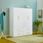 Description Have a stylish place for your bedroom with this Wardrobe Armoire Closet. The armoire is crafted from durable MDF and aluminum. This contemporary design armoire is a great place to store the family's wardrobe. With dividers, hanging rods, shelves, and spacious drawers, there's plenty of space in the armoire to organize each person's things. Highlights Modern Free Standing 4 Door Wardrobe Closet with Hanging, Drawers and Storage Compartments for Bedroom and Storage Use. Upon Assembly, Measures: 63 in. Length, 74.21 in. Height, 20.39 in. Depth. 4 Door Wardrobe Includes 4 Fixed Shelves, 4 Aluminum Hanging Rods, and 2 Center Drawers. Hanging Rod Options Include Space for Both Long and Short Hanging Clothes 90° Open Door Style with Metal Handles and Soft Close Hinges.
