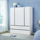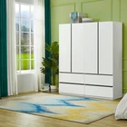 Description Have a stylish place for your bedroom with this Wardrobe Armoire Closet. The armoire is crafted from durable MDF and aluminum. This contemporary design armoire is a great place to store the family's wardrobe. With dividers, hanging rods, shelves, and spacious drawers, there's plenty of space in the armoire to organize each person's things. Highlights Modern Free Standing 4 Door Wardrobe Closet with Hanging, Drawers and Storage Compartments for Bedroom and Storage Use. Upon Assembly, Measures: 63 in. Length, 70.87 in. Height, 20.47 in. Depth. 4 Door Wardrobe Includes 4 Fixed Shelves, 4 Aluminum Hanging Rods, and 2 Center Drawers. Hanging Rod Options Include Space for Both Long and Short Hanging Clothes 90° Open Door Style with Metal Handles and Soft Close Hinges.