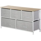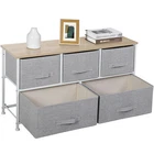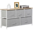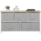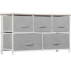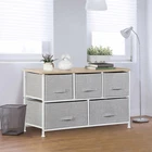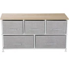 Specifications: Color: White Drawers: 5 Drawers Weight:9.75kg/21.49lbs Product Dimensions: 39.3"*11.8"*21.3" Material: Iron Frame, MDF, Gray Cardboard The Big Drawer's Size:18.11"*10.8"*8.46" The Small Drawer's Size:11.8"*10.8"*8.54" Load Capacity Of The Shelf: 22lb / 10kg Load Capacity Of Each Drawer: 11lb / 5kg Product Care: Wipe Clean With A Wet Cloth And Let It Dry Features: Restore A Tidy Home : Bits and pieces scattered everywhere in your home? With these 5 removable drawers you can sort items by type; easily tame the mess and bring back the fresh feeling to your sweet home When Fabric Meets Rigid Metal : A perfect mix bringing its strengths into full play - iron frame offers stable support for fabric boxes, and the fabric element adds a soft and warm touch to the metal-framed dresser drawer, and is more lightweight to move Every Room Scrambles for It : The cloakroom wants it as a cabinet to offer a home for workout gear, leggings and pajamas; the nursery wants a chest of drawers to stow baby stuff; the entryway wants a space saving storage unit for coming and going things; what's your plan Stability and durability : Crafted with a wooden tabletop and metal frame, the dresser is stable and durable. 4 adjustable feet allow you to use it on uneven surfaces and adds extra stability Easy to assemble : With a simple structure, it's a breeze to assemble the storage unit. Simply fix the screws in position and unfold the 5 drawers and it's ready to tame the mess