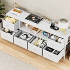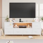 Specifications: Color: White PU Material: Fabric Drawers, Wood Top Board, Steel Frame Drawer Type: Fabric Drawers Product Dimensions: 55.1 x 11.8 x 22 in Product Weight: 35 lb Package Dimensions: 34 x 15 x 7 in Package Weight: 40 lb Weight Capacity: 100 lb Product Care Instructions: Wipe with a Damp Cloth Assembly Required: Yes Features: 【Long Dresser and Stable Design】This dresser is not just a chest of drawers, it's also a TV stand for your home. Dresser TV stand measures 55.1 x 11.8 x 22 inches.TV stands for 55 inch TV. The dresser makes it the perfect addition to your living room or bedroom decor. 【Dresser with LED Lights】This storage dresser is equipped with LED lights, you can control 21 colors modes by remote control. The fabric drawers with LED lights provides excellent ambient lighting, creating a specific atmosphere during parties or relaxation moments, making the space more vibrant. 【Dressers with Power Outlets】The TV consoles with charging station has 2 USB ports and 2 AC outlets. Allows you to charge easily without having to deal with messy wires. TV cabinet also makes your entertainment center setup look neat and organized. 【Easy to Clean】The drawers are made of fabric and are easy to clean, just wipe with a cloth.The 6 drawer dresser have arched handles and slide in and out easily. 【Easy to Assemble】The TV stand dresser set organizer packages will come with all the tools and accessories for assembly, You can follow the detailed steps in the manual to install, simple and can quickly get started and complete. Package includes: 1 x 6 Drawers Dresser TV Stand 1 x Assembly Tools 1 x Assembly Manual