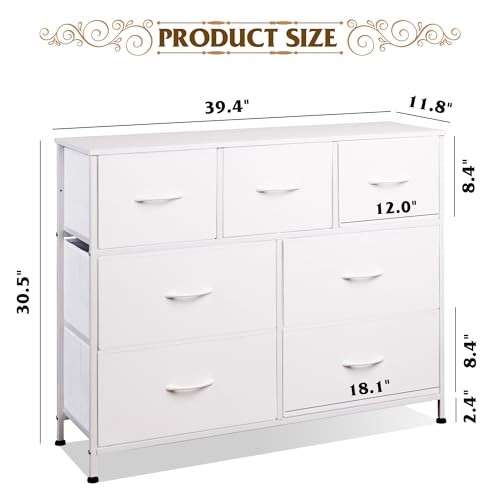 Return Policy Fast Delivery Trusted seller 7 Drawer Dresser TV Stand, Dressers for Bedroom, Fabric Storage Tower, Hallway, Entryway, Closets, Sturdy Steel Frame, Wood Top, Easy Pull Handle, White Product Description Roomy Storage Space: The dresser features 7 foldable deep drawers, which provide endless organizational possibilities and protect your privacy as well. The wood top is perfect to place vase, photos, mirror and frequently used items. Measured 39.4" L x 11.8" W x 30.5" H, the chest of drawers can also be used as TV stand. This media console table is ideal for television up to 45". The fabric bins are great to store CDs, DVDs, game controller, etc. Sturdy and Durable: Strong steel frame and water-resistant wood top offer stable support and ensure years of use; 4 adjustable feet can protect your floor from scratches and are also designed for uneven ground. Thanks to the handles, the drawers can be opened smoothly. Multifunction Drawer Organizer: This fabric dresser is ideal for wver you want to keep clutter under control. Feel free to use it as entertainment center, console table or storage chest in the bedroom, living room, closet, hallway… Assemble with Ease: The storage drawer unit comes with detailed instructions and all hardware needed for installation, you can easily assemble it in 15-20 minutes without other's help. A installation video guide has been uploaded for help. Shipping Returns Payment Shipping Shipping is FREE to all addresses other than APO/PO boxes in the lower 48 states. All our stock ships from US-based warehouses. Shipped via USPS or UPS (depending on location and package weight) Unless stated otherwise, all orders will ship within 24-72 hours of your payment being processed. Check our feedback to see the great reviews of FAST shipping we offer. Returns Seller does not accept returns Payment We currently accept payment via eBay managed payments only. Once payment is cleared, we will dispatch your shipment within 1-3 business days. Please refer to the "Shipping" tab for more information regarding shipping speed to your destination.