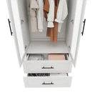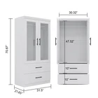 This contemporary/modern freestanding wardrobe is an excellent addition to any bedroom. It features a hinged door and a hanging rail, along with drawers and shelves, providing ample storage space. The armoire is made of particle board and MDF/Chipboard, and it comes in a solid white color with a black handle finish. The wardrobe cabinet has a maximum weight of 50 lb per shelf and requires tools such as a screwdriver and a drill for assembly. It has a 3-month manufacturer warranty and is sold as a flat pack. The item dimensions are 15.75-31.5 in length, 21.65 in width, and 70.87 in height, with a weight of 132.2~383 lb. This wardrobe cabinet is perfect for adults who require a large amount of storage space in their bedroom. Unique Design:This wardrobe closet stands out with its innovative design. The modern and simple streamlined design adds a touch of elegance to any bedroom decor. With sturdy construction and the inclusion of wooden handles, this armoire closet is not only aesthetically pleasing but also stable and easy to assemble with the help of two people. Sturdy & Safe Design: Unlike metal hangers, this closet is built to last. We use higher quality wood panels and fittings, its sturdy structure ensures that it won't shake or collapse, and the wall-mounted design prevents accidental tipping and ensures maximum safety. Professional After-sales Team: Our closet systems feature a simplified design for effortless installation. We provide detailed manuals that guide you step-by-step through the process. We also have a professional after-sales phone support team.