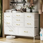 Product Description About this item • 【Spacious Storage Solution】Our tv stand with drawers feature three different sized drawers, providing multiple ways to organize your belongings. There are 9 deep collapsible drawers, each holding 20 lbs. Measuring at 43.3" L x 13.7" W x 31.8" H, this chest of drawers is also a suitable TV stand, accommodating televisions up to 55 inches. • 【Multi-Functional Storage】Our tv stand for bedroom is the perfect solution for taming clutter in any room. Whether it's an entertainment center, console table, or bedroom storage chest, this versatile unit can fit seamlessly in your bedroom, living room, closet, hallway, or nursery. Its adaptability makes it an ideal addition to any space. • 【Wood Top Holds 110 lbs】Dressers for bedroom are made with a sturdy steel frame and a waterproof wood top that can hold up to 110 lbs; fabric drawers are made from premium MDF boards, non-woven fabric and faux leather and can hold up to 20lbs per drawer; our dressers are durable and easy to use Clean, lighter and cheaper than a wooden dresser, weighs 37.5 pounds and easy to move. • 【Effortless Assembly】We've made assembling this storage drawer unit a breeze. With detailed instructions and all the necessary hardware included, you can effortlessly set it up in just 15-20 minutes, no need for additional assistance. • 【Sturdy and Safe】Safety is paramount, especially when kid ones are involved. Our fabric drawers are designed to prevent pinching, making them kid-friendly and family-safe. For additional peace of mind, we provide an anti-tip kit that allows you to secure the dresser to the wall, ensuring a secure environment for your loved ones. GipGiper Dresser TV Stand 9 Large Fabric Drawers Suitable for Various Scenarios Bedroom Living Room Cloakroom Kid Room Artificial Leather Fabric The surface of the fabric drawer is made of artificial leather, easy to clean. Drawer Load Capacity 20lbs The bottom of the drawer is composed of fabric and 2mm board, with a load-bearing plate inside to ensure the drawer can bear 20lbs Top Load Capacity 110lbs Dresser consists of thickened steel frame and 0.6" top plank to maintain high load capacity of 110lbs Anti-Tilt Device Protective tilting device, can be fixed on the wall, provide a stable environment for your family
