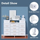 is a company specializing in furniture design, furniture manufacturing and furniture sales, providing a wide range of high-quality storage chests, bed frames, nightstands, storage cabinets, dressers and end tables to customers worldwide. Are you looking for a bedroom furniture that combines the functions of a storage chest/dresser/TV stand? Our versatile 12 drawer dresser offers tons of convenient storage without being bulky. This storage chest has 2-tier open shelf, and made of waterproof finished wood product that is very sturdy and easy to clean. The charging station with power outlet and USB port is very convenient. This alone makes it a great TV stand or electronics cabinet.The metal frame is sturdy enough to support TVs up to 65 inches, and the adjustable legs make it stable even on uneven floors.The LED lights also add nice ambience to your bedroom, closet, hallway or living room. Although the drawers are made of fabric, they are reinforced for strength so they hold up well to normal storage. Size Selection: 11.81""D x 55.12""W x 35.83""H 11.81""D x 47.24""W x 35.83""H Color Selection: White / Black Oak [47.24”W Super Wide Dresser] The size of this bedroom dresser is 47.24"W x 11.81"D x 35.83"H,which is super long dresser on the market with 12 efficient storage drawers. This long dresser can also be used as a TV stand in your bedroom.Available for 45, 55, 65-inch TVs. Small drawer size:16.1"W*5.9"D*5.5"H/ Middle drawer size:14"W*11.8"D*8.5"H/Large drawer size:17.7"W*11.8"D*6.3"H [Security Upgrade Charging Station] dresser with 2 open storage shelves, built-in charging station can provide convenience and ambience for your life. It comes with 2 AC outlets, 2 USB ports and a 4.9-foot power cord. providing flexible charging services for your mobile phones, vanity mirror, iPads, tablets, headphones, desk lamps and other devices at all times [Smart RGB LED Light] Multifunctional LED lights strips, beautiful 29 RGB LED Light colors (There are over 60000 colors to choose from), Mobile App Control multiple control modes. You can easily set the brightness, color, mode and timing functions to create various scenes [Unique Storage Design] Dresser for bedroom with 12 drawers and 2-tier open storage shelves provides ample and varied storage space for your bedroom, closet, hallway or dorm. 3 different sized drawers make it easy to categorize and organize your various sized objects.The 2-tier open shelf and center compartment can hold anything from decorative items to cosmetics [Exquisite Craftsmanship] The wide drawer dresser is made of metal steel frame and wood construction. All wood panels are made from high-grade MDF for a solid structure and excellent workmanship to meet your quest for quality. Foldable fabric drawers with non-woven fabric and PU finish are lightweight and easy to pull out and push in. 6 adjustable foot can prevent shaking in uneven places and protect the floor from scratches