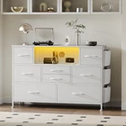 Features: Multi-functional Dresser: It is a stylish dresser and the perfect TV stand for your home. The dresser with drawers has one tier of wooden storage space that provide a variety of storage for bulky items. And the top space can also be used as a TV stand chest, suitable for TV size up to 50 inch. Large Storage Space Chest: The overall size of the dresser is 42.9" (L) x 11.8" (W) x 28.1" (H). The 8 foldable fabric drawers provides ample storage space for your bedroom, closet, hallway, or nursery. Drawers with different sizes allow you to properly organize different kinds of items and so on, categorized and clear at a glance. Side pockets on either side of the drawer dresser provide additional storage space. LED lights & Charging Station: To create the perfect lighting atmosphere for any scene, chest of drawers is designed with power outlets and LED lights equipped with color flashing modes. At the same time, it is convenient for you to charge your mobile phone, desk lamp, gaming device, tablet and other devices. Structural Stability: This dressers for bedroom wide comes with a sturdy thickened steel frame and anti-tipper kit, adjustable feet on the bottom that can be applied to uneven floors to adjust the balance and protect the floor from scratches. Easy Assembly: This storage drawer unit is easy to install. Comes with detailed installation instructions, parts and accessories are coded, precise holes make installation accurate and faster. If you have any questions, please feel free to contact us. Specifications: Material: Metal Frame, Fabric Drawers, Wood Top Drawer Type: Fabric Drawers Product Dimensions: 42.9 x 11.8 x 28.1 in Product Weight: 30 lb Package Dimensions: 46 x 14 x 7 in Package Weight: 35 lb Top Board Weight Capacity: 100 lb Product Care Instructions: Wipe with Dry Cloth Assembly Required: Yes Package includes: 1 x 8-drawer Dresser 1 x All Assembly Tools 1 x Installation Manual