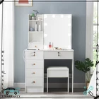 Product description: This dressing table has a graceful design with large table top which offers a fantastic storage capacity for all your jewellery ,treasures and makeup. It is not only a great bedroom dresser table but also a good space saver and organizer . The dressing table made from MDF , its strong and solid construction will provide an excellent experience for your home.The beautifully crafted dressing table with stool set is sure to make a big impression on your bedroom. A New day begin with a good makeup and good mood. To realize your princess dream with this dressing table. Features: A large sliding mirror with 10 LED lights which provides a good view and allows you to look best every day Two middle drawer with lock and four small drawers is perfect for storing jewellery ,treasures and perfumes, meeting all your makeup needs. Three shelves behind right sliding mirror and on the left also provide additional storage space, which make your table more tidy The large table top can betransformed between a dressing table and a writing desk Made fromenvironmental MDF and wood, has great stability and durability, making itelegant Padded stool with smooth leather and soft sponge offers optimal comfort Suitable for all types of rooms: bedroom, living room,bathroom ,study etc. Flat package and easy to assemble 10 dimmable Large LED light - Can be touched and does not hurt your skin. Adjustable Light Brightness. - Energy saving and super bright dimmable LED lamps. - Life of light bulbs up to 50,000 hours or more, very durable. 3 color temperature modes - White light, neutral light and warm light provided, and gives you suitable light at any time. Design enthusiast: No USB port to power the vanity mirror lamp? No socket to power the hair dryer and hair curler? Don't worry, this dresser is equipped with a charging station, 2 standard plugs and 2 USB ports, making everything easier and more convenient Specification: Colour: Warm White Material: MDF Overall dimension: 80(L) x 40 (W) x 131(H) cm Mirror: 48 (L) x 60 (H) cm Number of Drawers:6【4*(27cm*12.5cm)+1*(50cm*12.5cm)+1*(23.5cm*10cm)】 Number of Shelves:4【2*(L:51cm)+2*(L:23.5cm)】 Stool:32 (L) x 22 (W) x 34 (H) cm Style:Morden Features: Flat Pack,With 10 LED Mirror, With Stool Package includes: 1 x Dressing Table 1 x Stool 1x 10Pcs Led Lights 1 x Instructions We will work with you to until you are satisfied.we sincerely hope that you can leave us a positive comment,If, for any reason you are not satisfied with your purchase, please contact us through "My Messages" or "Ask Seller Questions" before leaving neutral or negative feedback.