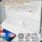 White Dressing Table Vanity Set W/ LED Lighted Mirror & Charging Station & Stool
