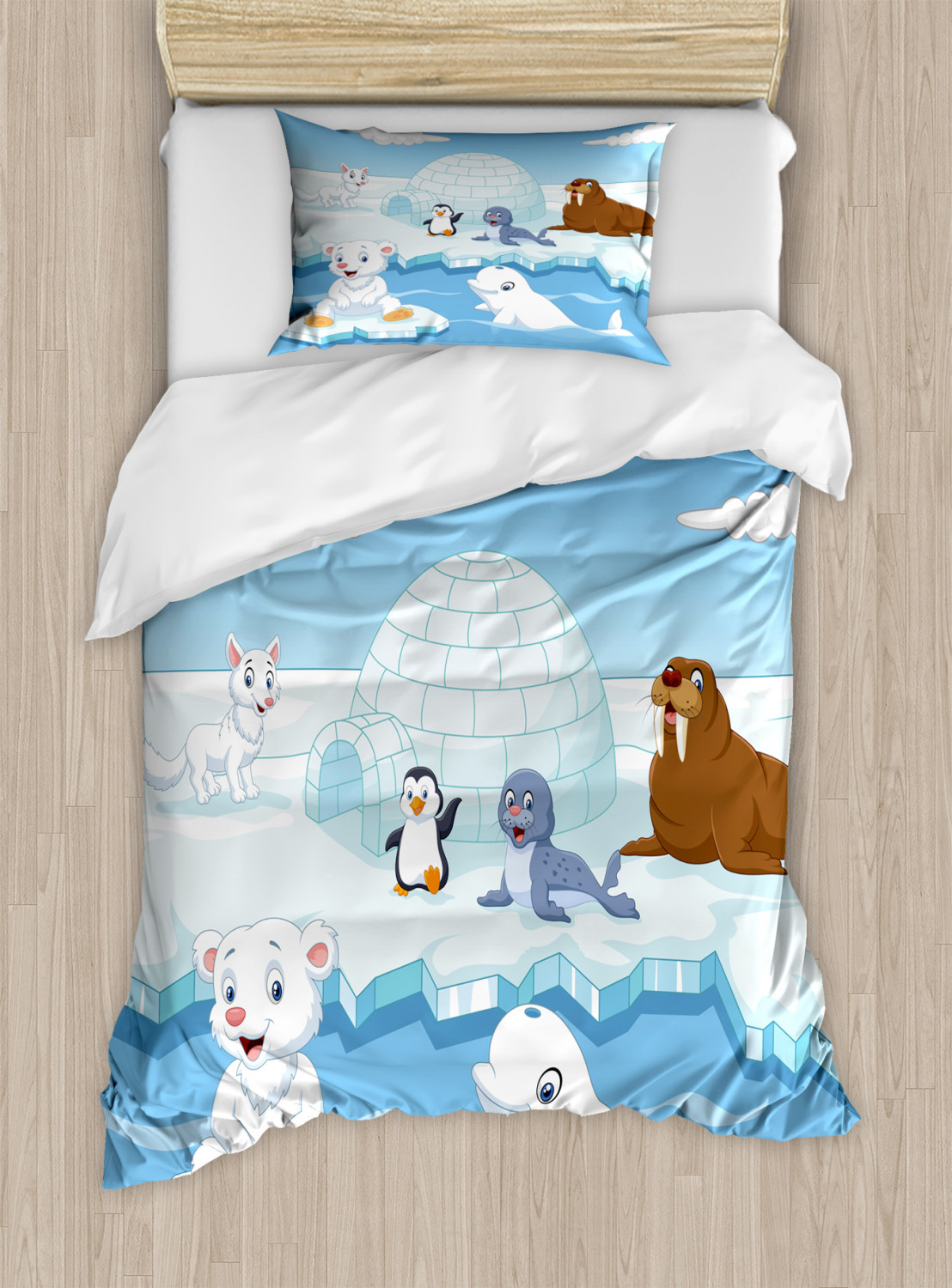 White Duvet Cover Set King Size Polar Bears Seal Penguins with 2 Pillow Shams Time to embrace modern looks, feel-good fabrics, and high-quality materials! King, queen, or twin - these 3 pcs duvet cover sets will work in any bed for any season! Woven from 100% brushed microfiber fabric, our duvet cover collection is constructed for maximum strength and ultra comfort only for you and your beloved ones. All you need to do is to simply put our duvet cover on your comforter and secure it with zipper closure, and enjoy your new bedding set! MEASUREMENTS: KING SIZE SET: Duvet Cover (104" W X 88" L) and 2 Pillow Shams (36" W X 20" L). QUEEN Size Set: Duvet Cover (88" W X 88" L) and 2 Pillow Shams (30" W X 20" L). Twin Size Set: 1 TWIN Duvet Cover 68" X 88" + 1 Pillow Sham 30" X 20". The duvet cover FEATURES hassle-free hidden zipper and the pillow shams have an envelope closure. Please note that COMFORTER NOT INCLUDED IN THIS SET. This only duvet cover, allowing you to protect the comforter/duvet insert from dust, mites, and other stains. WRINKLE FREE - The microfiber material creates ultimate softness and comfort, also provides wrinkle, fade, and shrink resistance when properly cared for. Very durable and sustainable material that will not endanger your health or the environment, either. No chemicals used, No dye substance harming the health of you or your family, %100 microfiber recyclable environmentally friendly fabric. LOW MAINTENANCE: Machine washable in cold water. Suitable for tumble dryer use on low heat. Can be ironed on medium heat when necessary. Do not bleach. Choose your style between thousands of different and creative patterns. Or simply find your perfect gift idea ever for housewarming, birthday, bridal shower, Christmas, Mother’s Day, and newlyweds… You can find a theme for everybody and every interest in our Ambesonne Store. The images we display have the most accurate color possible but, due to differences in pc monitors, there can be slight color differences between the product and the image. Due to manual measurement, please kindly allow 1-2 cm discrepancy. The Duvet Cover and Pillow Shams are printed on the FRONT SIDE ONLY, the back of them are PLAIN WHITE-COLORED. This is ONLY the Duvet Cover, sold WITHOUT the Comforter.