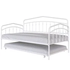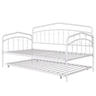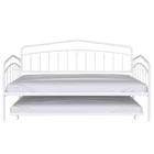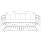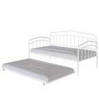 Specifications Place of Origin Malaysia Main Color White Main Material Metal Use Case Bedroom Bed Size Twin Bed Type Daybeds Box Spring Requirements Box Spring Not Required Bed Frame Material Metal Dangerous Goods #dangerFlag# Dimensions & Weights Assembled Length (in.) 76.85 Assembled Width (in.) 40.87 Assembled Height (in.) 44.57 Weight (lbs) 55.44 Product Features [Elegant and Simple Style]: The design of the black/white iron art daybed in this children’s room is truly commendable. It exudes a sense of elegance and simplicity, blending seamlessly with the room's overall decor. The bed is sturdy yet delicate, offering a touch of industrial charm that complements the modern feel of the space [Durable Metal Frame]: Both the daybed and trundle feature secured metal slats for support and durability. Includes a trundle with four easy-glide casters (2 locking, 2 non-locking) that easily rolls in and out when you need an extra sleeping space. [Anti-Noise]: The plastic buckle design can fix the slats firmly to prevent the noise from moving slats, ensuring an immersive sleep experience. [No Box Spring Needed]: There is no need for a box spring as the 22pcs sturdy metal slats, which provide strong support and can effectively prevent the mattress from sagging. [Easy Installation]: Two-person installation around 1 hour is recommended. [Easy Handling]: Ships in one easy-to-handle box. [Mattress Suggestion]: Designed to fit two standard twin size mattresses (maximum 8 inches). Mattresses excluded. No additional box spring or foundation required. Description