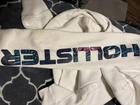 Stay cozy in this stylish white Hollister hoodie designed for women. Made from high-quality material, this hoodie is perfect for any activewear occasion. Its sleek design with the Hollister brand name makes it a must-have for any fashion-forward woman's wardrobe. The hoodie comes in a size S and is ideal for those who love a comfortable and snug fit. Its white color gives it a versatile edge, making it easy to pair with any outfit. Whether you're hitting the gym or running errands, this hoodie is the perfect addition to your activewear collection.