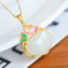 White Jade Ruyi Pendant Necklace Jewelry Amulet 925 Silver Chalcedony Natural