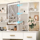 Bedroom Vanity Dressing Table with Mirror and Adjustable LED Strip Makeup Desk