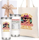 Mom Christmas Gifts, Best Mamasaurus Tumbler Gift, Funny Christmas Gifts for Mom Wife from Daughter Son, Unique Popular Christmas Presents Gifts Ideas for Wife Women(20Oz, White) - Mother's Day, New Year, Christmas, Holiday, Birthday, Valentine's Day 【Best Happy Mother's Day Gift Set】: Show love with our " Mamasaurus" gift set. This Containing ① 1* exquisite gift box ② 1* Mamasaurus tumbler ③ 1* big capacity tote bag ④2* lids & 2* straws ⑤1* straw brush &1* tumbler brush. Skillfully packaged, a whimsical yet loving gift for your spectacular mom. 【Unique Gifts Ideas for Mom】: Our wearing "PINK SUNGLASSES" Mamasaurus and nutrition facts label design celebrates a mom's love, care, and dedication! Perfect appreciation gifts for your mom, or your wife, sister, friends, daughter who are outstanding mothers! 【Chic & Sturdy Mother's Tote Bag】: Measuring 14 x 13.4 inches with an 8.8-inch handle for a comfortable grip, our durable tote is decorated with lively graphics and is a breeze to maintain. It's the quintessential companion for a mother's life. 【18/8 Stainless Steel & Superior Insulation】: This 20oz tumbler, crafted from durable 18/8 stainless steel, features double-wall vacuum insulation, keeping drinks hot for 6 hours or cold for 10 hours, perfect for any occasion or location.