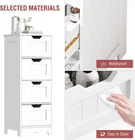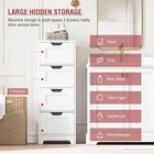Product Description About this item Ideal Space-Saving Solution: This bathroom storage cabinet with 4 drawers offers ample storage space. Each deep drawer provides substantial hidden space with interior dimensions of 10.43" L x 9.84" W x 6.9" H, making it perfect for organizing cosmetics, toiletries, toilet paper, and other items. It’s an excellent choice for storing bathroom essentials. Sturdy and Reliable: Made from selected medium-density fiberboard (MDF), this storage cabinet features excellent strength and stability. It has a weight capacity of up to 40 pounds, meeting your basic storage needs. Waterproof Surface: The painted MDF surface can withstand moisture and prevent dampness, making it ideally suited for humid environments such as bathrooms and laundry rooms. Sleek Design: Our bathroom cabinet stands out with its exceptional details. The drawer is designed with easy-pull cutout treatment, giving you a comfortable holding feeling and a streamlined look. The white finish is elegant and versatile, fitting seamlessly with both traditional and modern home decor. Versatile and Easy to Assemble: In addition to serving as a bathroom floor cabinet, this storage cabinet with drawers is also ideal for your kitchen, dining room, entryway, living room, and more. It comes with all necessary hardware and an illustrated instruction manual to help you assemble it quickly and easily.