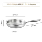 Tri-Ply Stainless Steel 12inch Frying Pan Non-toxic stainless steel skillet Non-toxic stainless steel fry pan Non-toxic stainless steel frying pan 【Your Reliable Cookware Partner】Each pan and pot form heats quickly and spreads heat evenly because of our High-Control level of materials. We insist on upgrading the quality 【Efficiently Energy Saving】In , Energy saving is not just a slogan but truly happened! Tri-Ply Stainless Steel cookware Heats quickly and spreads heat evenly, will spend 20% Gas or electricity less that you have spend in cooking before 【Professionally Design】Outer Riveted and Stay cool handle design. The Good grips Handle which Provides a confident grasp and remains cool-to-touch while cooking over induction, ceramic, electric, or gas cooktops.Take it directly from stove to oven 【Practical and Elegance】Tri-Ply Stainless Steel Pan Combines Ergonomic cookware Design and superior features for optimal cooking performance. The rounded and encapsulated rim for drip free pouring and easy transfers,Rivet-free surface to eliminate food traps 【Family Approved】Highly polished 18/8 Food Grade cooking surface won’t react with food. Oven and broiler safe up to 650˚F, 3-layer metal construction delivers performance and durability for years to come