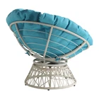 Create a laid back vibe in your home with our twist on the classic papasan chair design. Nest into the generously large Dacron-filled cushion. Enjoy the boho styling of our durable resin wicker wrapped over a metal frame. Complete with a 360° swivel to twist and turn to your heart’s content. Tune in to a time when listening to your favorite albums and sipping on a cool, refreshing drink was your only ambition for the day. Add a bit of fun to your living room, family room or dorm with our easy, casual Papasan Chair. Available in several exciting colors and finishes. Durable, well built and just plain fun! Enjoy the boho styling of our papasan chair made with durable resin wicker wrapped over a metal frame. Lounge and twist and turn to your heart’s content with virtually frictionless 360 degree swivel. Nest and relax into the generously large high quality soft Dacron-filled button tufted cushion. The seat cushion is easy to remove dust and debris since it is tied on the frame by straps. Overall Size: 40” W x 36” D x 35.25” H; Seat Size: 40” Diameter x 4.5” T; Back Size: 40” W x 18” H x 4.5” T