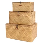 Set of 3 Wicker Basket - Multiple sizes are combined to meet daily storage needs.Large baksets:14.2"x9.4"x7.3", Medium Baskets:12.2"x7.1"5.9",Small Baskets:10.2"x5.5"x4.3" Premium Material - Woven storage basket is made of 100% natural wicker and metal frame with a light grass scent, perfect for storing nightstands. Storage basket with lid is closed by a buckle, which is dust-proof and prevents naughty babies or pets from opening the box, so that the items have a safe storage environment. Wicker baskets with lids add a boho style to home decor and are perfect for bathrooms, bedrooms, kitchens, living rooms and more. It is not only a stunning decorative boxes, but also a versatile storage boxes with a lock. Decorative Storage Bins are great for organizing Kids Toys, Snacks, Books, Make up and Hair Accessories and other small things.It can be displayed anywhere you want without taking up too much space.