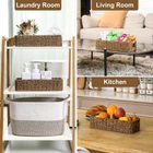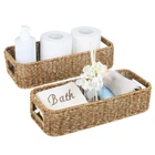 This small basket is all handmade with Polypropylene Plastic Wicker.Each knot takes our workers a long time to weave.So it's a perfect gift that is completely handmade. The toilet paper holder basket is able to hold 2 to 3 Toilet Papers to be placed over the toilet to make the bathroom more decorative. Towel baskets for bathroom fit most standard toilet tanks. This small wicker basket suitable for handy storage of toilet paper rolls, hand towels, bathroom toiletries, makeup, jewelry, and other small items on the toilet tank, bathroom vanity, entryway table, bookshelf, kitchen counter, or stationery supplies, remotes, CDs Dimensions: 13.4 x 5.5 x 3.1 inches (L x W x H), size may vary within 1/4 inch due to handwoven design. Thoughtful Gift:When you don't know what to give as a gift,it will be a great choice.Your friends or family will absolutely love this thoughtful gift.It will be the perfect finishing touch to your home