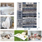 【MATERIAL DESCRIPTION】: Made Of Non-Pilling Fleece, More Comfortable And Warm. Does Not Absorb Any Moisture. Lightweight, And Can Be Folded Compactly. Super Soft And Completely Resist Shrinkage And Wrinkles. 【SIZE DESCRIPTION】: There Are 60x50 Inches for Wife from Husband. 【TO MY WIFE】:Never Forget That I Love You. If I Could Give You One Thing In Life, I Would Give You The Ability To See Yourself Through My Eyes. Only Then Would You Realize How Special You Are To Me. I Wish I Could Turn Back The Clock. I'd Find You Sooner And Love You Longer. The Day I Met You, I Found My Missing Piece. I Love You Always And Forever. 【APPLICABLE SCENE】: The Blanket Easy To Carry, It Is Very Suitable For Indoor And Outdoor Use In Cold Weather (Especially During Camping And Picnic) To Provide Continuous Warmth, And It Is Also Very Suitable For Lying On A Bed, Sofa, Car, And Office, Etc. Whether Summer Or Winter. 【PERFECT GIFT】: When You Bring The Blanket For Your Wife, It Will Be A Perfect Gift For Wedding Anniversary, Birthday, Christmas, New Year's Day, Valentine's Day, Mother's Day, Wife Appreciation Day, Family Gathering, Party And Other Festivals. It Will Be A Great Gift!