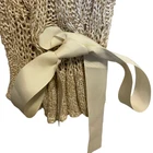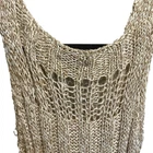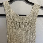 This beautiful Willi Smith sweater is perfect for any occasion, whether you're going to a wedding or just dressing up for a casual day out. The knit fabric is open and lacy, giving it a delicate and stylish look, while the ribbon sash adds a touch of elegance. The sweater is sleeveless and has a scoop neck, making it perfect for warmer weather. The beige color and solid pattern make this sweater versatile and easy to pair with any outfit. The care instructions recommend hand-washing only, ensuring that the sweater stays in great condition for a long time. Add this relaxed fit sweater to your wardrobe today and enjoy the comfort and style it provides. PTP 14, inches lying flat across, Length 22 inches, measurements approximate