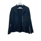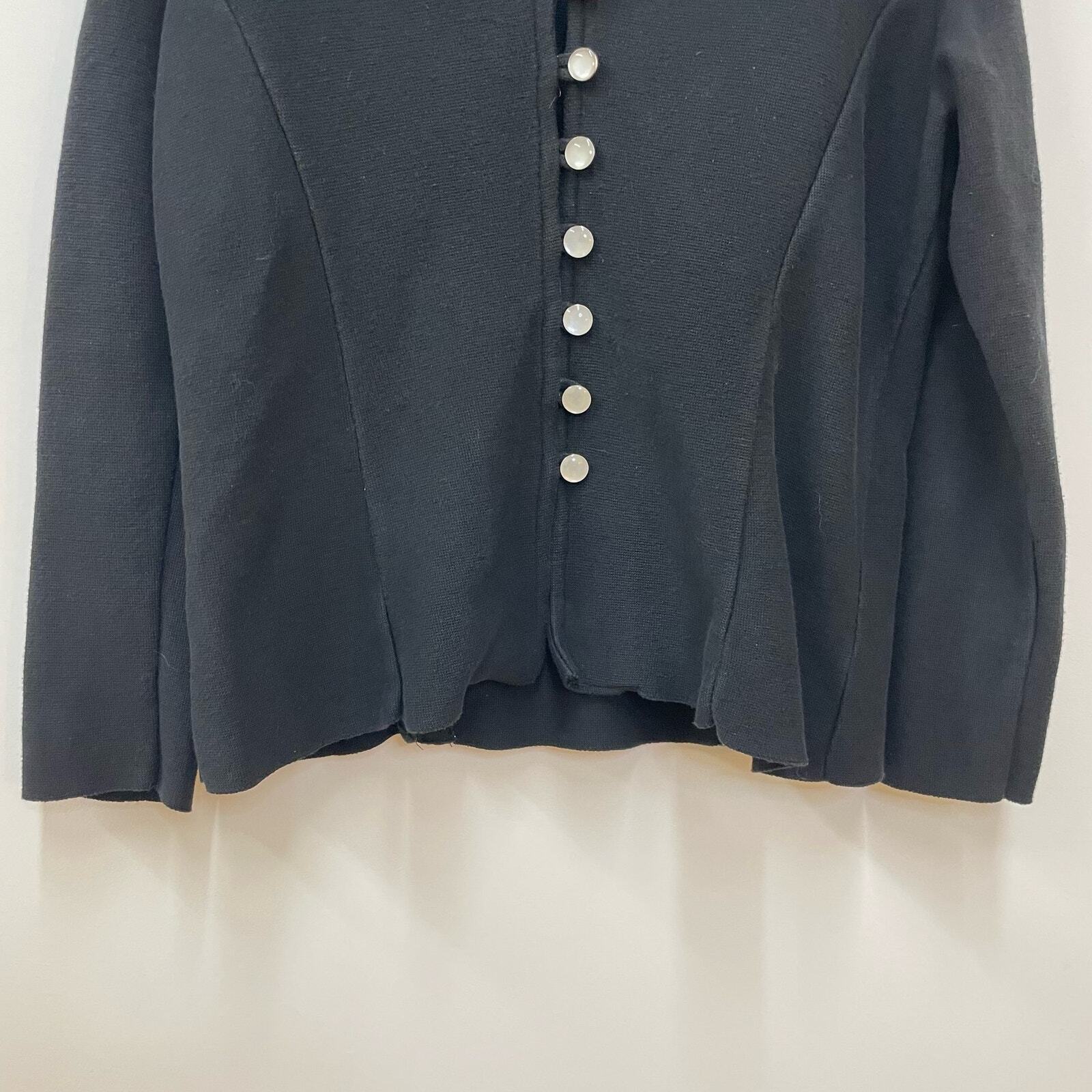 Willow Black Cotton Blend Button Front Collared Knit Cardigan Sweater Cotton-poly blend Button up with pearlescent buttons Back slits with buttons Loop button closure Long sleeves Made in USA *Approximate measurements: Pit to pit- 21" Length- 23" *Excellent preowned condition