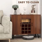 Product Description Description: This wine bar cabinet is a nice solution for wines and other items. It comes with spacious top, pull-out drawer, open compartment and 2 door cabinets, keeping a variety of objects organized for tidy environment. Besides, the wine rack easily stores 9-bottle wines and can be removed for large items. And the 2 adjustable shelves bring customized storage. With exquisite craftsmanship, the wine bar cabinet is sturdy and durable. Moreover, the 2 anti-tipping devices further enhance the stability for safety using experience. This mid-century coffee bar cabinet is supposed to be a practical yet elegant addition to your home. Features: Tabletop, drawer, cabinets and open compartment for large storage space Wine rack can be taken out to offer other objects space 2 adjustable shelves enable the cabinet to easily store different sized items 2 anti-toppling devices ensure excellent stability & safety Easy to clean with sufficient clearance to the ground Can be used as a buffet sideboard, wine bar cabinet, liquor cabinet, etc Smooth metal slides to better open and close drawer Premium metal hinges are sturdy and durable for usage Specifications: Color: Walnut Material: Engineered Wood, MDF, Metal Overall Dimensions: 38" x 16" x 31" (L x W x H) Open Compartment Dimensions: 11.5" x 14.5" x 6.5" (W x D x H) Cabinet Dimensions: 12" x 14.5" x 23.5" (L x W x H) Each Grid of Wine Rack: 3.5" x 3.5" x 14.5" (W x H x D) Interior of Drawer: 9.5" x 12.5" x 3" (W x D x H) Cabinet from Ground: 6" Weight Capacity of Tabletop: 155 lbs Weight capacity of Each Shelf: 30 lbs Weight Capacity of Drawer: 15 lbs Net Weight: 75 lbs Package Includes: 1 x Buffet Cabinet 1 x Instruction On Aug 14, 2025 at 20:04:26 PDT, seller added the following information: