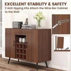 Product Description Description: This wine bar cabinet is a nice solution for wines and other items. It comes with spacious top, pull-out drawer, open compartment and 2 door cabinets, keeping a variety of objects organized for tidy environment. Besides, the wine rack easily stores 9-bottle wines and can be removed for large items. And the 2 adjustable shelves bring customized storage. With exquisite craftsmanship, the wine bar cabinet is sturdy and durable. Moreover, the 2 anti-tipping devices further enhance the stability for safety using experience. This mid-century coffee bar cabinet is supposed to be a practical yet elegant addition to your home. Features: Tabletop, drawer, cabinets and open compartment for large storage space Wine rack can be taken out to offer other objects space 2 adjustable shelves enable the cabinet to easily store different sized items 2 anti-toppling devices ensure excellent stability & safety Easy to clean with sufficient clearance to the ground Can be used as a buffet sideboard, wine bar cabinet, liquor cabinet, etc Smooth metal slides to better open and close drawer Premium metal hinges are sturdy and durable for usage Specifications: Color: Walnut Material: Engineered Wood, MDF, Metal Overall Dimensions: 38" x 16" x 31" (L x W x H) Open Compartment Dimensions: 11.5" x 14.5" x 6.5" (W x D x H) Cabinet Dimensions: 12" x 14.5" x 23.5" (L x W x H) Each Grid of Wine Rack: 3.5" x 3.5" x 14.5" (W x H x D) Interior of Drawer: 9.5" x 12.5" x 3" (W x D x H) Cabinet from Ground: 6" Weight Capacity of Tabletop: 155 lbs Weight capacity of Each Shelf: 30 lbs Weight Capacity of Drawer: 15 lbs Net Weight: 75 lbs Package Includes: 1 x Buffet Cabinet 1 x Instruction On Aug 14, 2025 at 21:36:31 PDT, seller added the following information: