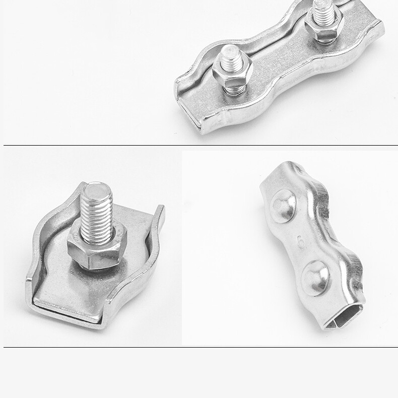 Wire Rope Collet 304 Stainless Steel Cable Single Clamp M2~M10 Double Head Clamp Product Manual: Product Name: Wire Rope Chuck Product Classification:(Single Clip) ((Single Clip) ) Product material: A2-304 stainless steel Product Type: Wire Rope Accessories Product size: M2-M10 Wide range of uses: widely used in home improvement and furnishings, mid-to-high-end industrial equipment, handicrafts 304 stainless steel material, outdoor use, no rust. Various engineering cranes, metallurgical and mining equipment, port and railway loading and unloading, forestry machinery and power equipment, aviation and maritime, land transportation, industrial and mining enterprises, lifting, hoisting, traction and other industries Packing description: plastic bag/carton