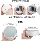 More Details *Size: 5.4"L x 5.4"W x 2"H * Material: ABS * 300 Lumens, 3000K/4500K/6000K, DC 5V, LED lifespan is 80,000 Hours. * The remote control can operate the light within 10 feet. * Powered by 3pcs D-Cel batteries (not included) or 5V/2A DC USB power cord(included, 10ft), and each set of batteries’ run time is 50-80 hours. * Choose a color from the 18 colors by pressing a corresponding color button. Set brightness and color-changing modes at dynamic mode / jump/ breath/ colorful rotation / gradient / solid color rotation. * Can be used anywhere like elder's room, kid's room, bathroom, hallway, wedding, party decoration, etc. Packing List - 1 x Ceiling Light - 1 x Remote Control - 1 x 10ft DC Power Cord - 4 x Screw Hardware - 3 x Plastic Anchor - 6 x Wire Clip - 1 x User Manual [Timer Function] -- You can set the shower light to turn off automatically in 0.5/1/3/6 hours by pressing the timer buttons on the remote, save energy and prolong battery life. [Brightness Dimmable] -- Press the dimmer buttons on the remote to adjust the brightness of the ceiling light to 30%, 70%,100%. [2 Power Supply Modes] -- The 5.4" puck light can be powered by 3pcs D-Cell batteries (not included), very long lasting, or you can use 5V/2A DC USB(included) to power it directly. [Super Bright] -- Each night light is 300 lumens, very bright, and there are 3 color temperatures for your choice, you can set it to warm white(3000K), natural white(4500K) or cool white(6000K). [5 Lighting Modes & 18 Colors Changing] -- The mood light has 18 color choices and 5 lighting modes, you can change the colors freely or set them jump or rotate. [Easy Installation] -- Very easy to mount with provided screws, no additional wiring is needed. Good choice for your bedroom, bathroom, hallway, corridor, bedside, closet, shower, stairway, closet, pantry, living room, kitchen, laundry room, etc.