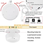 MORE DETAILS * 220 Lumens, 4000K, 2.3W, lifespan is 80,000 Hours. * The remote control can operate the light within 20 feet. * Powered by built-in rechargeable polymer lithium battery, 10000mA, and full charged run time is about 29 hours. * Choose a color from the 10 colors by pressing a corresponding color button. Set brightness and color-changing modes at FLASH/ STROBE/ FADE/ SMOOTH. * Easy to install with screws(included). * Can be used anywhere like bedroom, bathroom, hallway, corridor, closet, shower, stairway, pantry, shed, dorm, cabinet, counter, living room, etc. Packing List - 1 x Ceiling Light - 1 x Remote Control - 2 x Screw - 1 x USB Charging Cable(19.7 inches) - 1 x User Manual · [Motion Sensor ON/OFF Switch] -- You can set the closet light to motion mode or regular mode by pressing the motion sensor ON/OFF buttons on the remote. And it will auto ON when motion is detected within 16 feet, auto-off after 45 seconds if no motion detected. · [4 Lighting Modes & 10 Colors Changing] -- There are 10 colors and 4 lighting modes for your choice, you can change the colors freely or set them jump or fade, perfect for mood lighting. · [Brightness Adjustable & Timer Function] -- Each ceiling light has 42 super bright LED, 220 lumens, 4000K. And the brightness can be dimmed to 5 levels by pressing the dimmer buttons. There are 4 timer buttons on the handy remote, and you can set the light to turn off automatically in 1/2/3/4 hours to save energy. · [USB Rechargeable] --The built-in rechargeable polymer lithium battery is 10000mA, full charged run time is about 29 hours. · [Moon & Sun Mode AUTO/OFF Switch] -- Moon mode: the light will auto ON at night when motion is detected; Sun Mode: the light will auto ON at both day and night when motion is detected.