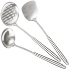 Wok Spatula Set of 3, Stainless Steel Kitchen Utensils Set, Stainless Steel Cooking Utensils Set, 17"/43.5cm Heat-Resistant Wok Tools Include Stainless Steel Metal Spatula, Metal Kitchen Ladle, Metal Cooking Skimmer, Wok Utensils and Wok Accessories Premium Material: Made of high-grade stainless steel, this set is rustproof and built to last. It can endure high heat and daily wear, maintaining its quality over time. Perfect Size: At 17"/43.5cm, each utensil offers optimal reach and control. The length is suitable for various pots and pans, enhancing cooking convenience. Ergonomic Handles: The handles are designed for comfort. Their shape and texture ensure a firm grip, reducing hand fatigue during extended cooking. Versatile Set: Comprising a ladle, skimmer, and spatula, it meets diverse cooking needs. Ideal for soups, frying, and straining, it's a must-have for any kitchen. Stylish Addition: With a sleek stainless steel finish, it not only functions well but also beautifies your kitchen, complementing any decor style.