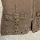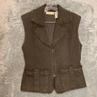 Good Pre Owned condition. Please see photos for details. SUPER FAST SHIPPING!!! We ship next business day! If you aren't happy with your purchase we offer 30 day FREE returns. No questions asked! Women 90s Y2K Streetwear Hip Hop Raw Hem Ring Studded Zip Up Brown Denim Vest S
