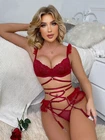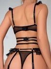 About this Item: Features: 3 piece sets, lace, contrast mesh, push up, no padding, low rise thong, garter belt. Fabric has some stretch,and it's soft and comfortable Occasion: nightwear, sleepwear, lingerie party, honeymoon night, wedding night and so on Package Content:1*Garter Bra set lingerie