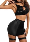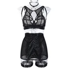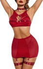 89% Polyester, 11% Spandex Imported Snap closure Hand Wash Only đăElasticity Mesh Fabrică sexy chemise is made of sof t sheer mesh fabric which patchworks premium smooth ployester knit , pro-skin and comfortable, dirt resistant, breathable, and the fabric is stretchy enough to shape your curves. đăUnique DesignăThe top consists of sheer mesh cutout tank and bra with wire, hook & eye back closure and adjustable straps make it easy for wearing. High waisted high stretchy skirt and lined g-string makes you more comfy and charming. Especially all straps are adjustable, detachable thigh band give you more option. đăCharming StyleăThis lingerie bodysuit is perfect as nightwear, daily wear, lounge dress, party club wear, sexy outfit, bra sets for women, also can be an underwear sets under coat or jacket. đăMultiple OccasionsăPerfect to wear it at home/bedroom, lingerie party, wedding night, honeymoon, anniversary, Valentine's Day, boudoir shoot, street phytography, bachelorette party, , cosplay or a special night. Put on ladies lingerie to heat up your partner! đăPackage Contentsă 6PCS womens lingerie set includes: 1xbra, 1xskirt,1xO-ring chocker, 1xG-string, 2x detachable thigh bands. Find your perfect size and having a good night with your lover/your husband with lingerie sets!