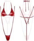 Set Include: 1x Bra Top, 1x Suspender G-string Briefs Condition: New with tag Material: Polyester + Spandex Features: Women’s erotic shiny metallic mini micro bikini lingerie set, one size fits most. Minimal coverage, can be adjusted to fit your size, makes you look hot and alluring. Good stretchy fabric, comfortable to wear. Halter neck and backless bra top with straps tie up at back, matching an adjustable spaghetti straps suspender G-string briefs underwear. Perfect for you to wear for beachwear or at home for intimate activities, for theme party wear, etc. Please refer to the size measurement below before ordering. Hand or machine wash cold. One Size : S/M Underbust: 56-110cm/22.0-43.0 inch; Suspender Briefs Shoulder to Crotch: 69cm/ 27.0 inch Friendly Tips: The size is measured by hands, please allow minor error of measurement. Photo color might be a little different from the actual product due to color display of different monitors.