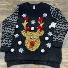 Womens Black & Gold Red Nose Reindeer Sequin Holiday Christmas Sweater 1X Item listed Mew with Tags Measurements are as follows Chest 24” Length 29” Long sleeve Will ship USPS within 24 hours safely and efficiently