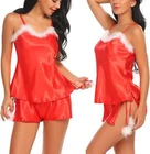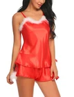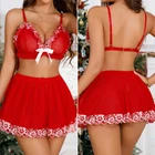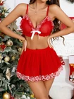 Womens Christmas Lingerie Babydoll Santa Dress Lace Teddy Chemise Sleepwear Set