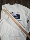 This women's Hollister sweatshirt is a lightweight cotton pullover in size Small. It features a solid white color with a round neck, long sleeves, and a classic logo design. Made of a blended fabric with a cotton lining, this sweatshirt is suitable for activewear and is ideal for walking or school activities in the winter, fall, or spring seasons. It offers a regular fit and is designed for comfort and style.